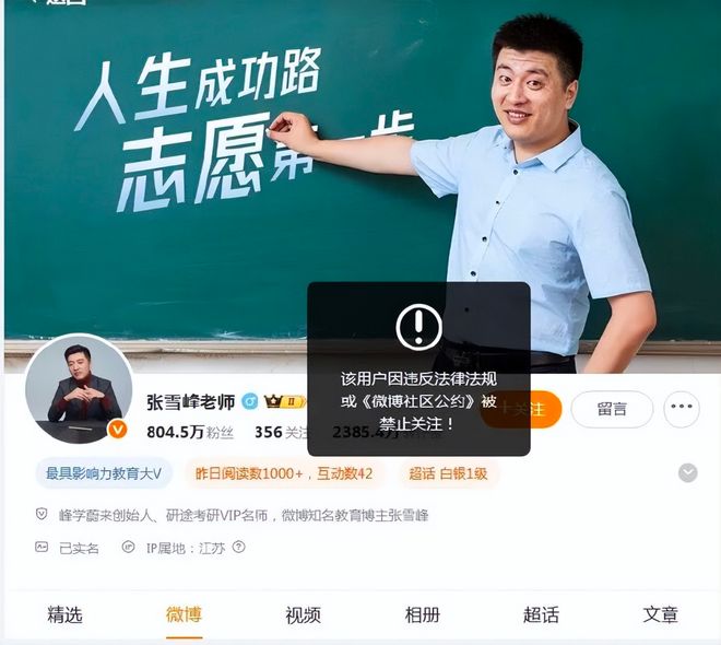 通报一出,张雪峰迅速通过@张雪峰老师 账号回应,仅以“处罚期已过,已经深刻反省,谢谢大家的关心支持!以后不会了”